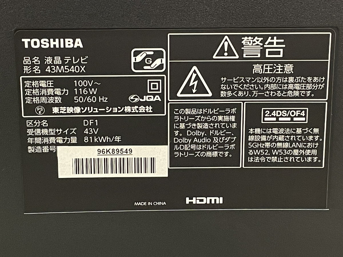 43C`tป4Ker REGZA 43M540X(2020Nปข)HDR/Netฎๆ กOUJoshin13831~JnEผฺ๘nย