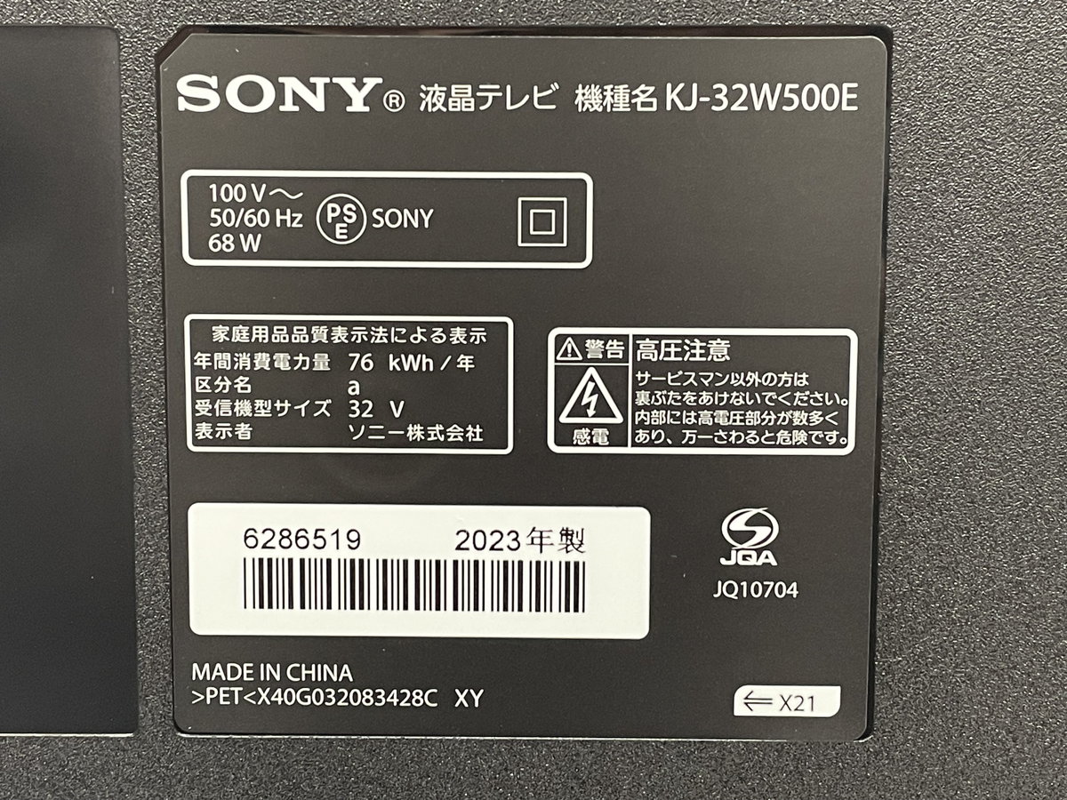 32C`t»2Ker SONY KJ-32W500E(2023N»’) ‘\j[ BRAVIAJoshin12561~JnEΌΪψnΒ