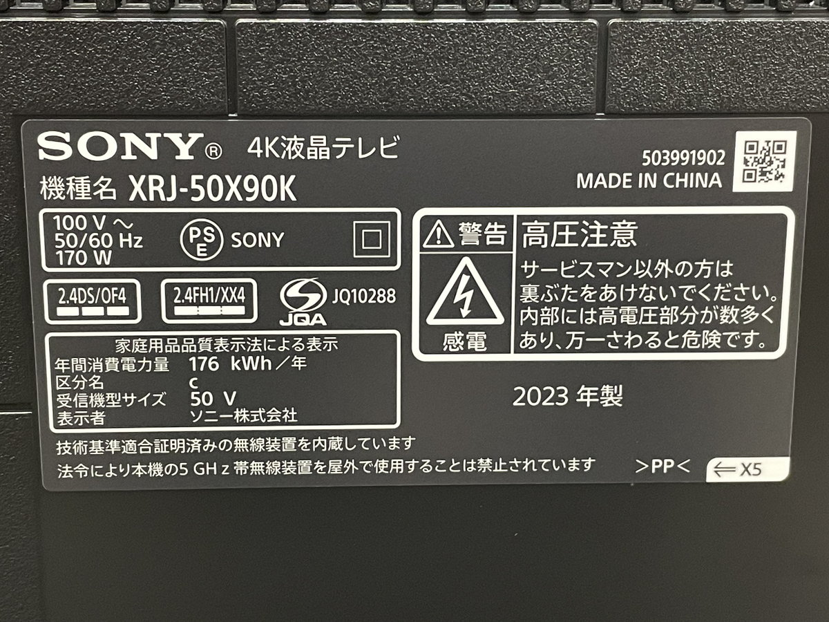 50C`t»4Ker SONY XRJ-50X90K(2023N»’) ‘\j[ BRAVIAJoshin31951~JnEΌΪψnΒ